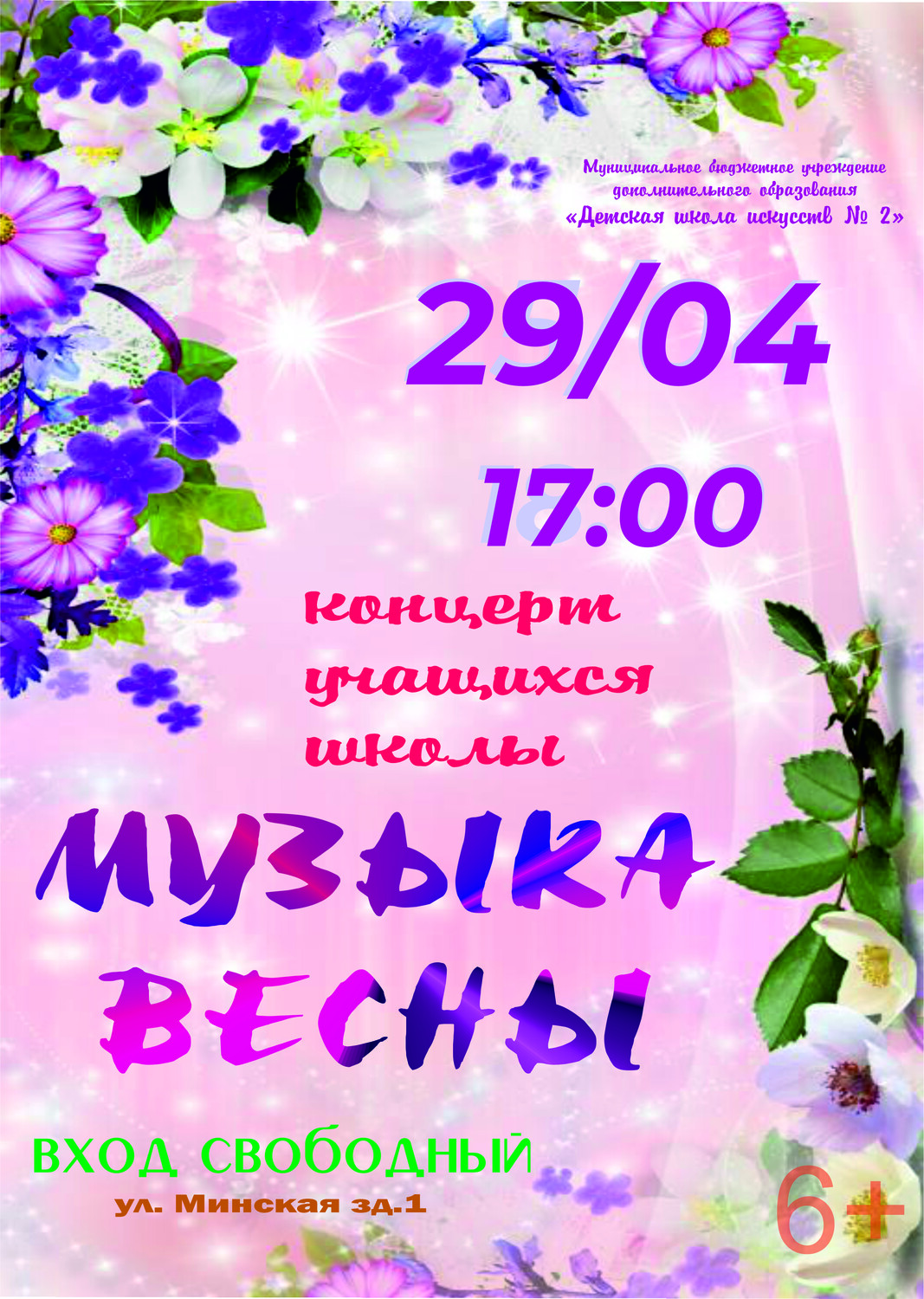Дорогие друзья! Приглашаем вас на концерт учащихся школы "Музыка весны" Когда: 29 апреля в 17.00 Где: Детская школа искусств № 2 Адрес г. Саратов ул. Минская зд. 1